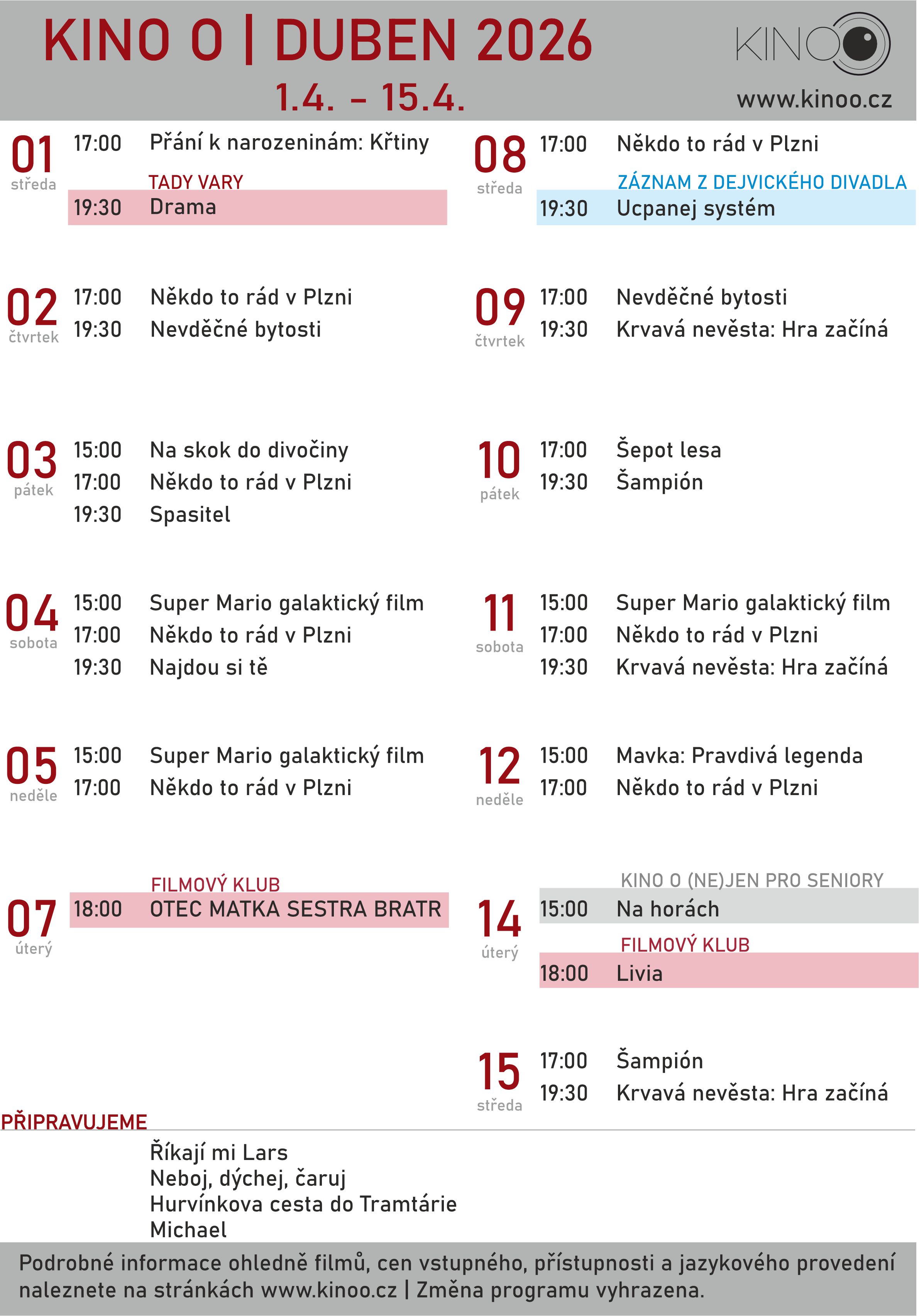 Každý měsíc vydáváme souhrnný program akcí města Orlová, který Vám zdarma nabízíme v tištěné podobě v našem informačním centru. Kalendárium si zde můžete stáhnout ve formátu PDF.